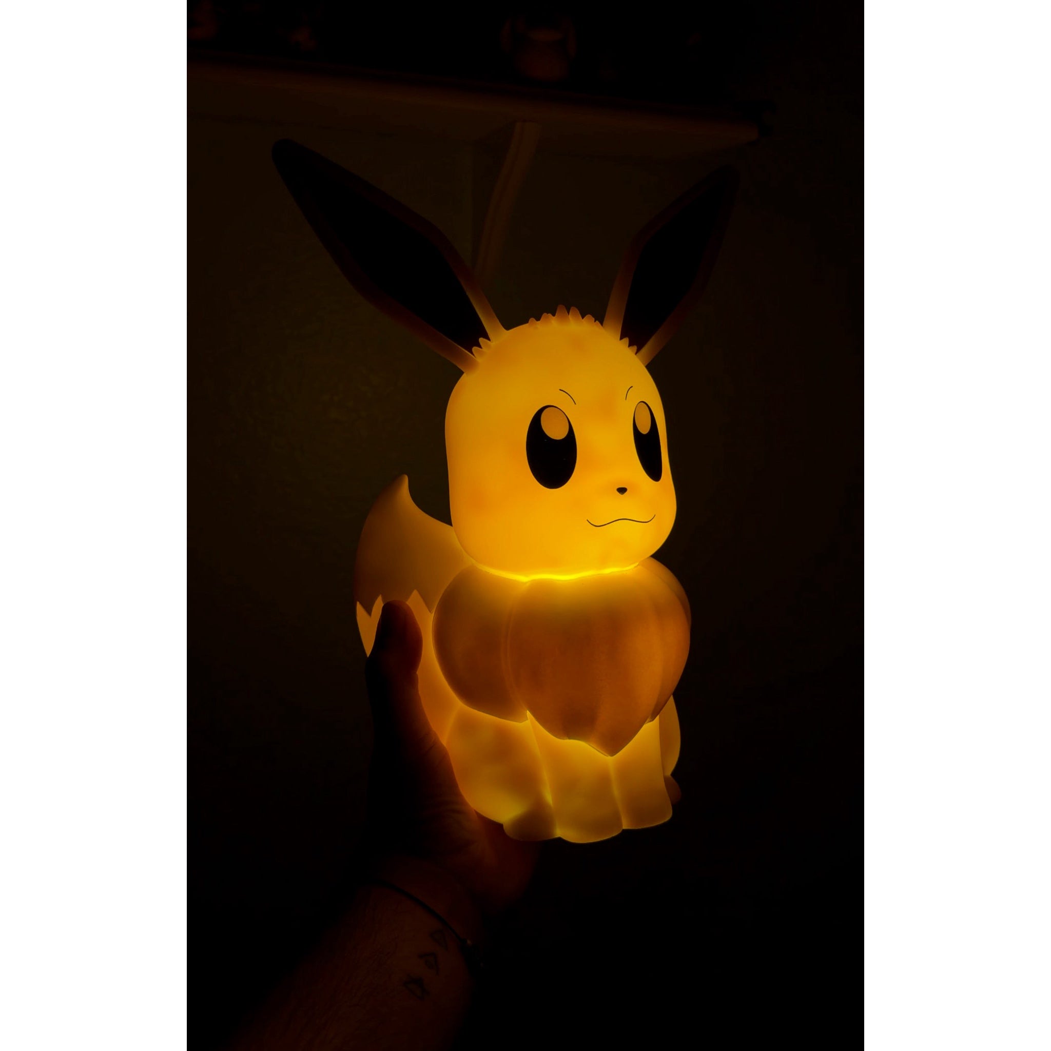 Esta exclusiva lámpara LED 3D de Eevee es un producto con licencia oficial aprobado por The Pokémon Company.Ofrece una luz suave gracias a sus LED. Con el control remoto incluido, puedes encenderla y apagarla cuando quieras y elegir tu modo de iluminación favorito: intensidad fija o variable. Esta lámpara inalámbrica de Eevee de 30 cm funciona con 3 pilas AAA (no incluidas).