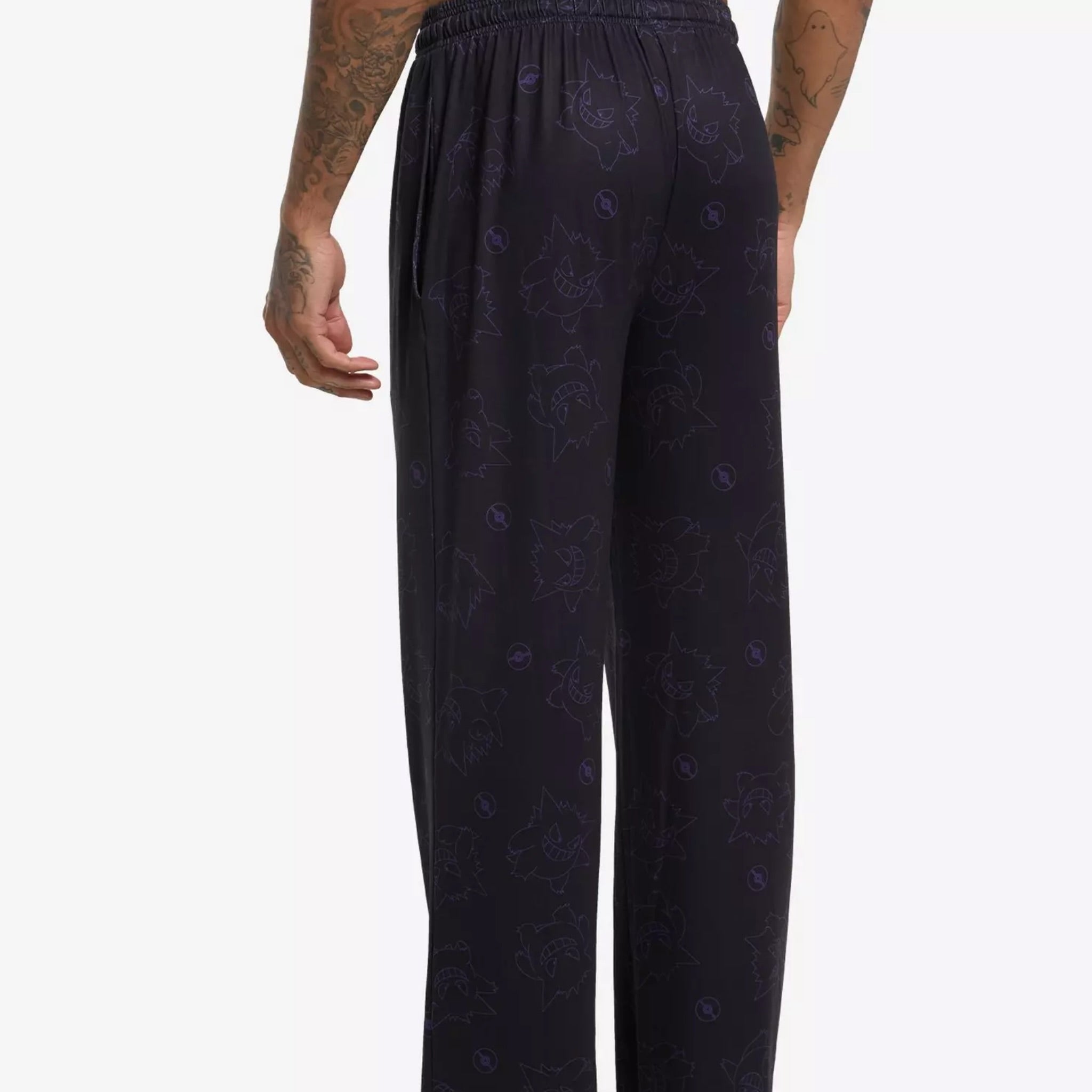 Pantalones de dormir con estampado completo Gengar en diferentes posiciones 👻 con Pokeballs. Cuenta con bolsillos laterales, cordón en la cintura y bragueta con botones.